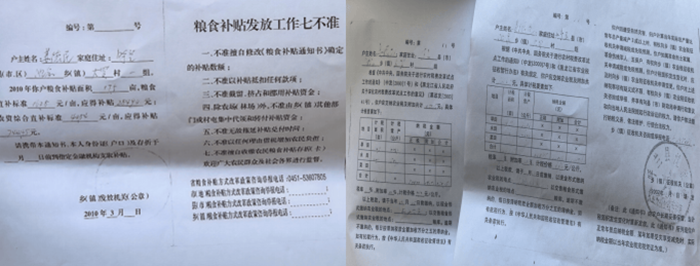 村民领取粮补和缴纳农业税证书