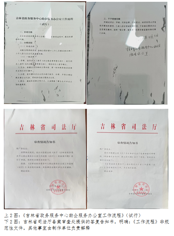 精简的《吉林省政务服务中心助企服务办公室工作流程》(试行)不规范、更没有法律依据