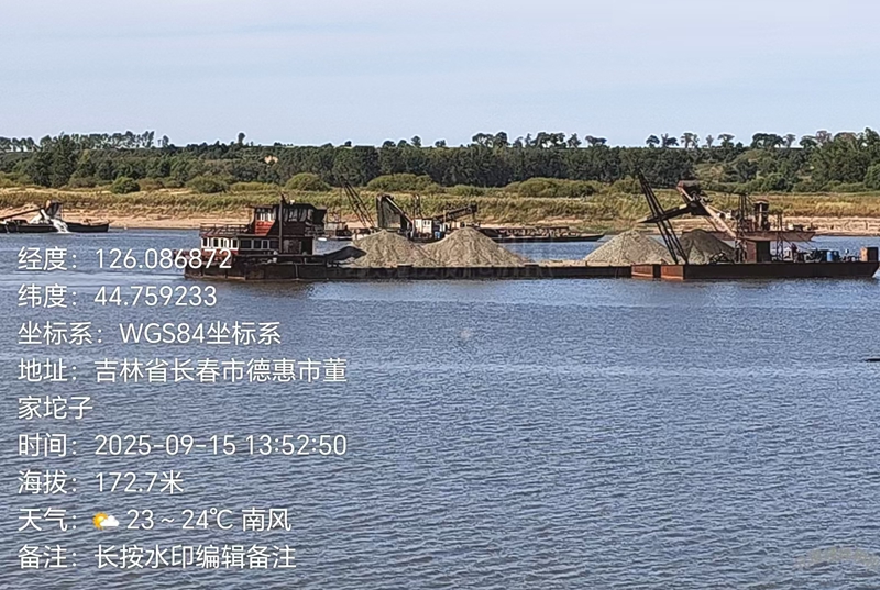 2024年5月,该公司以“榆树市五棵树镇湛江寺钱江清淤项目”为由,从榆树市政府和河务局获取专项审批,获批作业区域为湛江寺门口特定范围。但据徐连海提供的证据,鸿福砂石公司并未在审批区域开展清淤工作,反而将采砂船开至德惠市许家店采区及五棵树沙场门口——两处均非其合法采区及清淤范围。