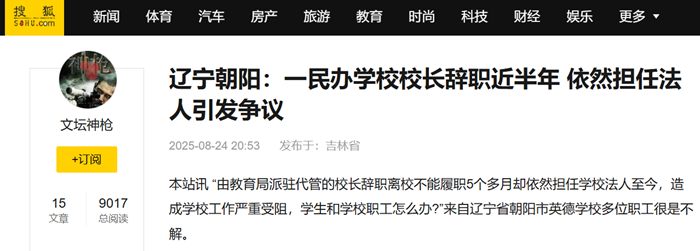 2025年3月12日,在代管未到期的情况下,校长张凤良辞职并离校,而法人一直没有变更,导致学校日常运行出现巨大困难。