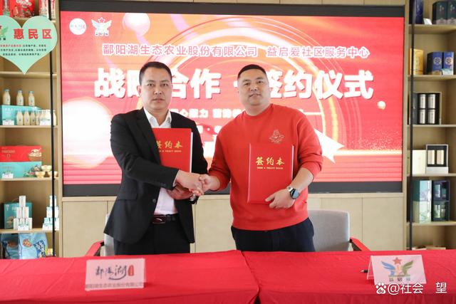 ▲鄱阳湖生态农业股份有限公司与益启爱社区服务中心战略合作签约仪式