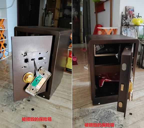 从监控视频中可以看出,偷盗者是他们4人团伙作案,带有专门的切割机等作案工具,且为了躲避小区监控,全程戴帽子戴口罩,在非法入室之前先暴力拆除我家的监控;我的房子钥匙和密码从未告知过任何人,他们绝无可能有我的房子钥匙和保险柜密码等,完全是通过各种撬锁工具,事先踩点,明确我不在家,非法闯入他人住宅;两个保险柜都是暴力撬开,偷盗后,扈某鑫打电话给民警:“就是我干的,你能拿我怎么样?”公然挑衅吉安执法部门!为了躲避小区监控,他们全程戴帽子戴口罩,把脸遮的严严实实,其目的很明确,进入房内直奔保险柜。
