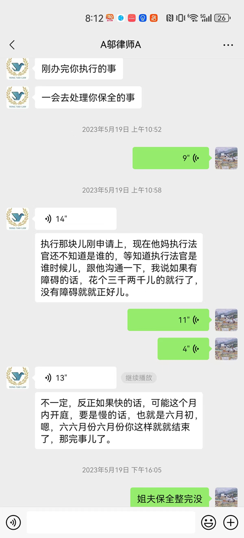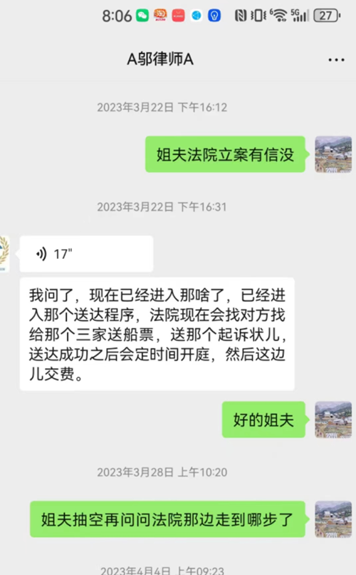 3月22日,邬春旭律师通过微信告知孙荣增,三起案件不但已经立案,且已经进入送达程序。