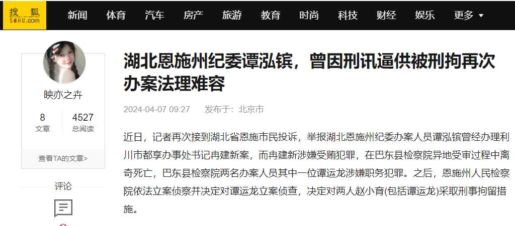 湖北恩施州纪委谭泓镔,曾因刑讯逼供被刑拘再次办案法理难容