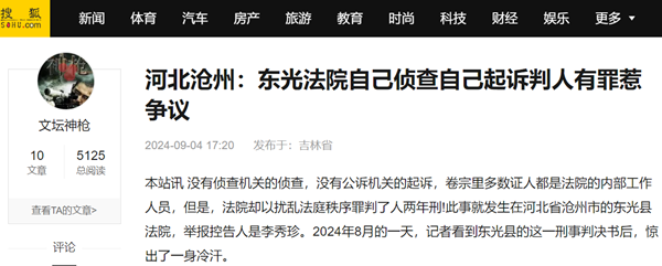 本站讯 没有侦查机关的侦查,没有公诉机关的起诉,卷宗里多数证人都是法院的内部工作人员,但是,法院却以扰乱法庭秩序罪判了人两年刑!此事就发生在河北省沧州市的东光县法院,举报控告人是李秀珍。2024年8月的一天,记者看到东光县的这一刑事判决书后,惊出了一身冷汗。