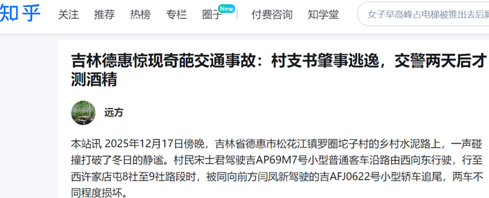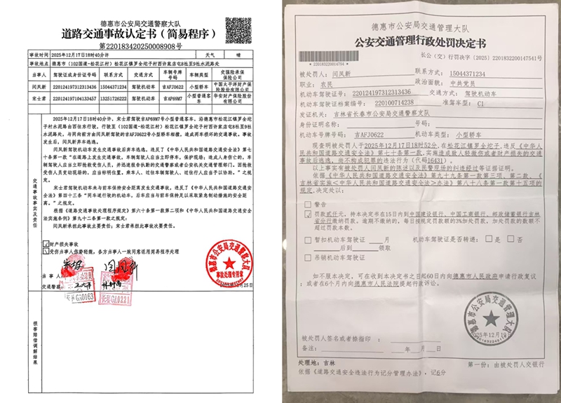 本站讯 2025年12月17日傍晚,吉林省德惠市松花江镇罗圈坨子村的乡村水泥路上,一声碰撞打破...
