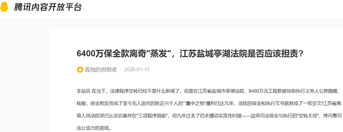 这场持续九年的维权之争,早已超越个人利益的范畴。6400万保全款的去向与追索,不仅是对个案公正的考验,更是对司法系统内部监督、纠错机制及程序衔接能力的全面检验。公众期待相关司法机关能正视问题、主动作为,让被"蒸发"的保全款回归原位,让违法者受到应有的惩处,用实际行动守护司法公信力的底线。否则,司法保全与执行的程序空转,终将寒了民众的心。