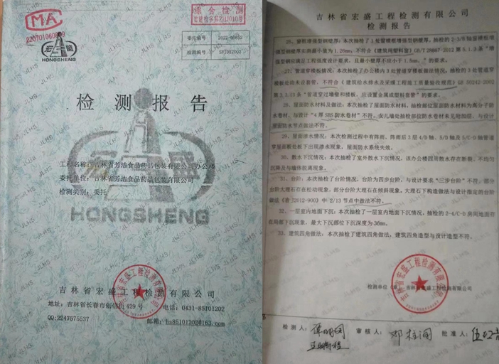 据悉,为了证明案涉工程存在质量问题,日前,芳洁公司已依法委托吉林省宏盛工程检测有限公司对涉案楼宇进行质量鉴定,得出的结论居然是,该工程存在多达33项质量不合格问题!芳洁公司也再次向东丰县检察院提出了抗诉申请。