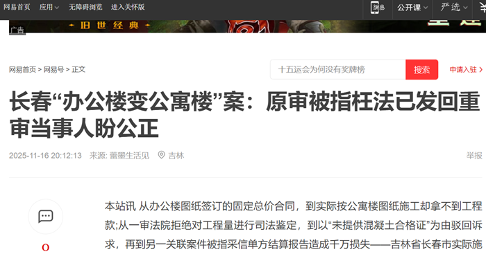 本站讯 2024年10月末以来,诸多网络媒体曾经以《长春宽城:办公楼变更为公寓楼施工,法官居...